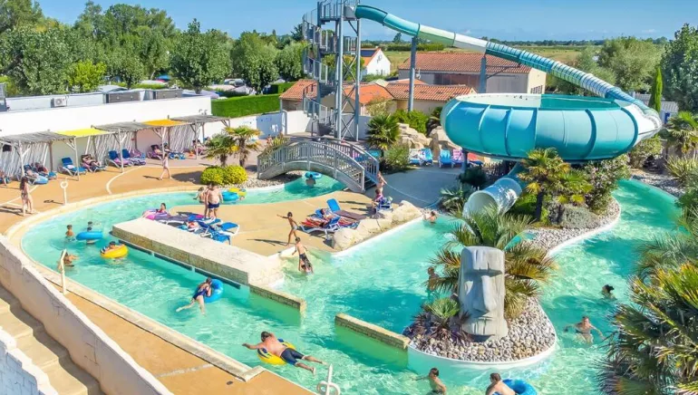 Its water park with solarium beach, lagoon and XXL slide is open from April. Entertainment in July and August for all ages, with children's and teenagers' clubs, sports activities and themed evenings. Bar, snack bar and restaurant with terrace.