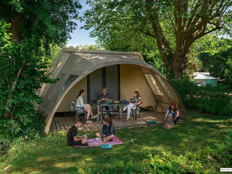 As for accommodation, the campsite offers bare pitches (for tents, caravans, camper vans, etc.), as well as a wide choice of rental accommodation: mobile homes, coco sweet, tithomes, canvas bungalows, caravans and a 14-bed gite spread over almost 3 hectares of wooded parkland on the banks of the River Loir.