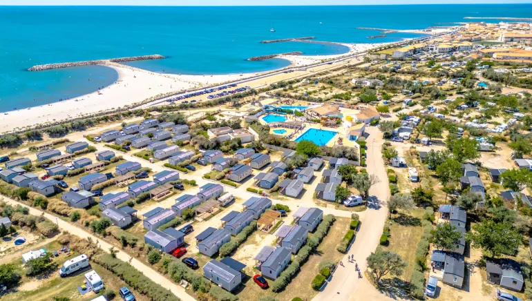En bord de mer Méditerranée, le camping est situé dans un site préservé exceptionnel qui offre un panorama complet de la région : les plages de sable fin, les habitats traditionnels camarguais, les étangs avec la faune et la flore.
