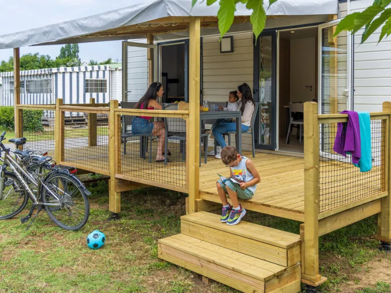 The playground, city stadium, children's activities, 2 heated swimming pools (1 of which is covered with a jacuzzi) and other facilities mean that young and old alike can relax and enjoy themselves in this calm, friendly setting. Wifi is also available free of charge throughout the campsite.