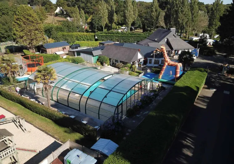 Charming 4* campsite located 1 km from the beach of Saint Michel en Grève. Philippe and Sylvie welcome you from April 1st to September 30th. You will stay on spacious pitches, delimited by hedges: 90 for caravan, tent or camper, 24 rentals including 2 TAOS mobile homes with private SPA. On site: heated indoor swimming pool with 27 m water slide, mini golf, multi-sports ground, skate park, inflatable giraffe, trampoline, children's playground, games room, mini-farm, petanque ground. On the service side, at your disposal: groceries, bread, pastries, take-away food, snack bar and wifi. Convivial evening twice a week and numerous animations in season.Localisation