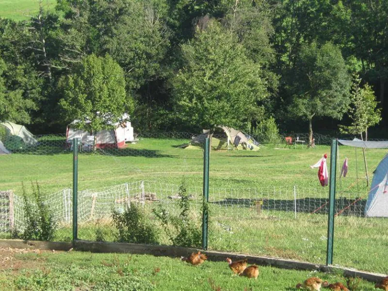 10 emplacements - Environ 25 campeurs.Le camping se situe face à la ferme, il est semi-ombragé, bordé d’un petit ruisseau. Plats cuisinés à emporter - Possibilité de table d’hôtes sur réservation sur réservation uniquement – Dépôt de glace - Soirées contes…