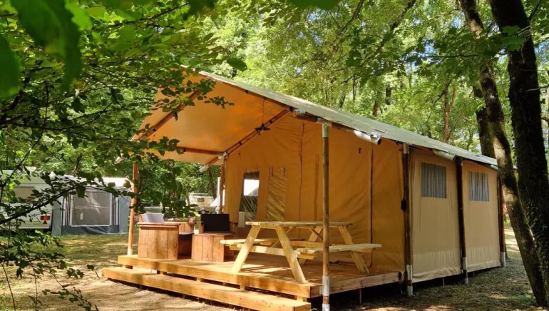 The campsite, which has been awarded the Accueil Vélo label, is located on the Viarhona cycle route and offers pitches for tents, caravans and motorhomes, mobile homes for 4, 6 and 8 people, and unusual accommodation such as PODS cabins, trapper cabins and lodge tents.