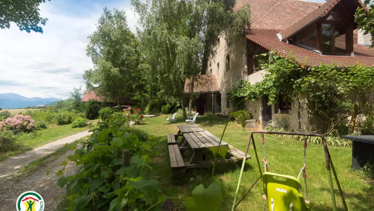 lounge, library, fireplace, kitchen, Ch.1 (1bed 2 pers. shower-wc). On 1st Ch.2 (2 bunk beds, 1 double bed, shower room-wc), Ch.3 (1 double bed, 1 crib, shower room, landing WC) on 2nd Ch.4 & Ch.5 (1 double bed, 2 bunk beds, shower room-wc). Garden and children's play area Ideal for exploring the Trièves, Vercors and Obiou Massif, for family reunions, weekends, training courses or seminars. Meals available on site. Close to organic market garden, Terre Vivante ecological center, Lake Monteynard, Himalayan footbridges, climbing routes, paragliding area.