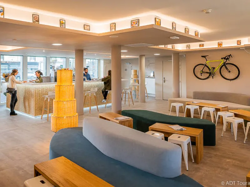 The People Hostel- Tours offers you the best of this destination, a few minutes' walk from the train station, in a brand new setting for the glory of cycling, with a beautiful, peaceful garden. At The People Hostel, the choice of stay is limitless: from comfortable private rooms to a super eco bed in a shared room. The Bar and the Restaurant, proudly run by Alexandre and Emilie, await you!Localisation