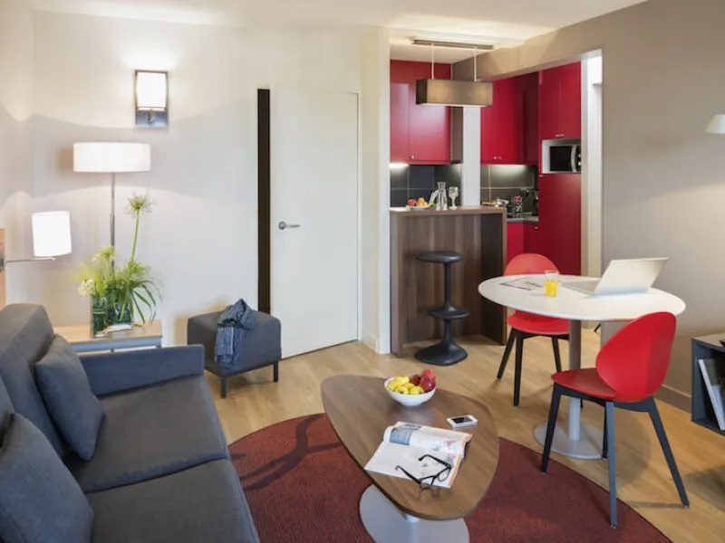 Ideally located in the city center of Toulouse, your 4 star aparthotel is near the Wilson square and Capitole square and 2 minutes walking distance from the main SNCF train station. The Adagio Toulouse Parthénon is also 15 minutes away from the airport and the Airbus Training Center. Our 99 apartments from Studio to 1 bedroom apartment for 4 persons (50m²) offer : fully equipped kitchen, separate bedroom, living room with sofabed and desk, panoramic view of Toulouse, some have balconies. Our reception team is available 24h and we have a daily cleaning service (except Sundays).Localisation