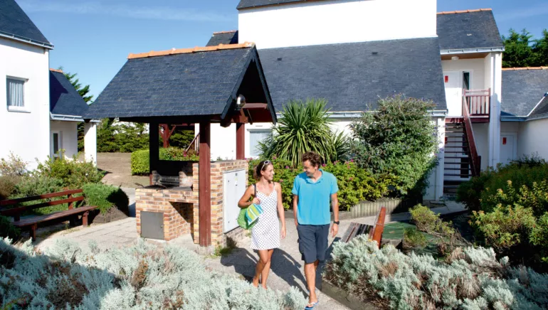 In the heart of a landscaped park of over 3 hectares, 400 m from the Valentin beach (accessible by bike) and the shops, the Village club Goélia "Les voiles Blanches", classified as a 3*** tourist residence, welcomes you in comfortable flats divided into 7 small hamlets, each with its own square, a real place of conviviality and meeting.