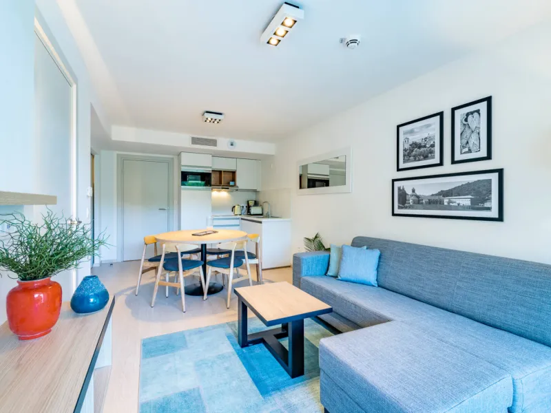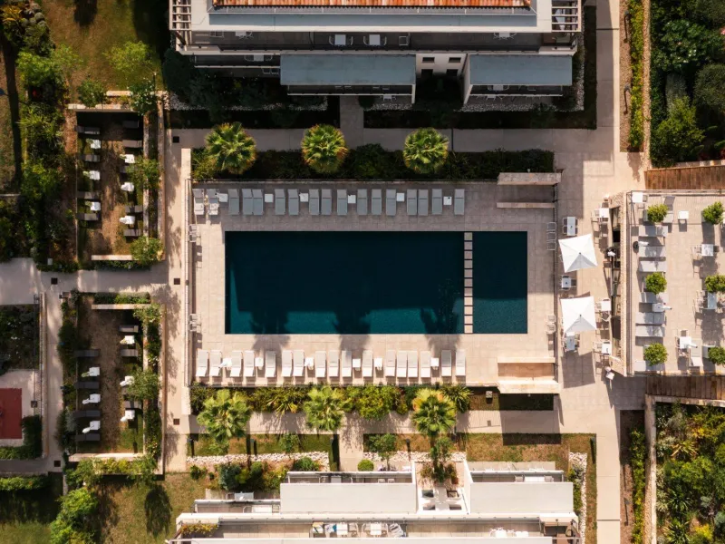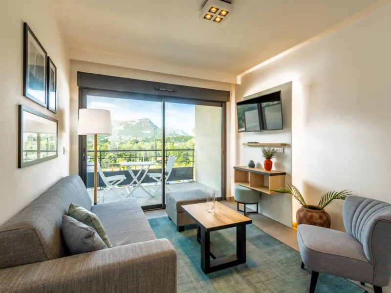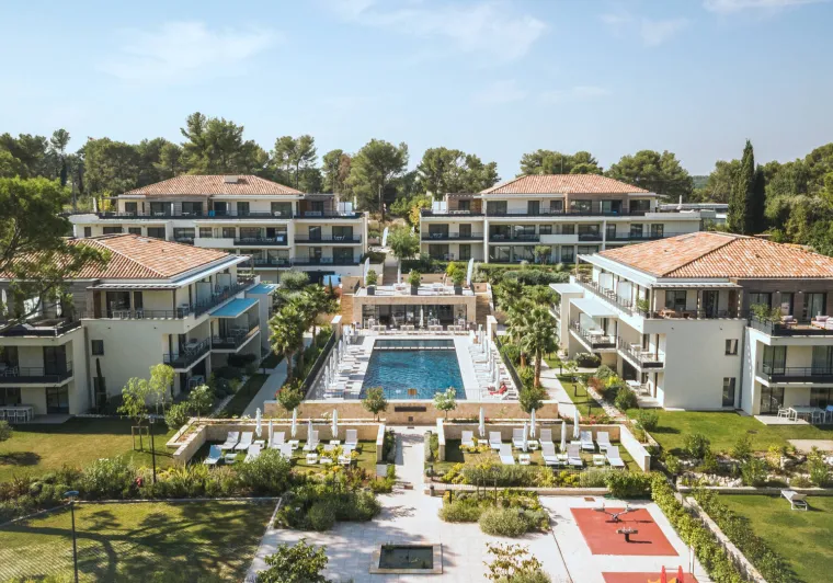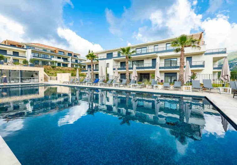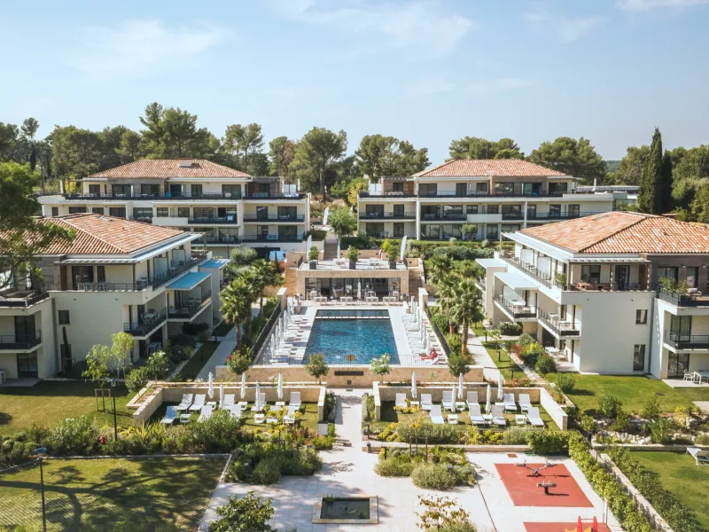 With its four buildings and its central swimming pool, the hotel offers a wide choice of accommodation, studios and apartments with 1 or 2 bedrooms qith high-end penthouses and private terraces. Each accommodation has a fully equipped kitchen, a comfortable lounge with flat-screen TV and a balcony. Many on-site facilities: heated outdoor swimming pool, multi-sports area, pétanque rink and 3 recharging teminals for electric cars.Localisation