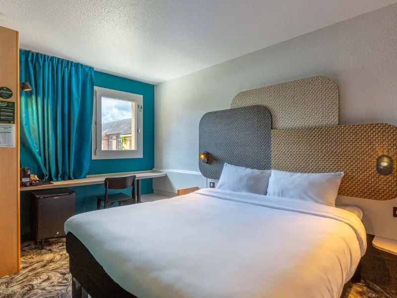 The B&B Chartres Centre is located in the lower town of Chartres, in a preserved environment, 8 mn walk from the Cathedral, the historical city center and the train station. A must-see stopover in the Beauce region, a green and fun city 50 minutes from Paris by train or by car. The hotel offers 82 air-conditioned rooms (including 3 for people with reduced mobility), a restaurant open every evening from 6:30 pm to 11:00 pm, a meeting room located on the banks of the Eure in a green setting. But also a bar with a 24h/24h snack service, a terrace and a laundry, a closed garage for a fee. A free Wifi access is proposed and accessible in all the hotel. Ideally located, by its proximity of the Aquatic Center Odyssée, of a park for the sportsmen...Localisation