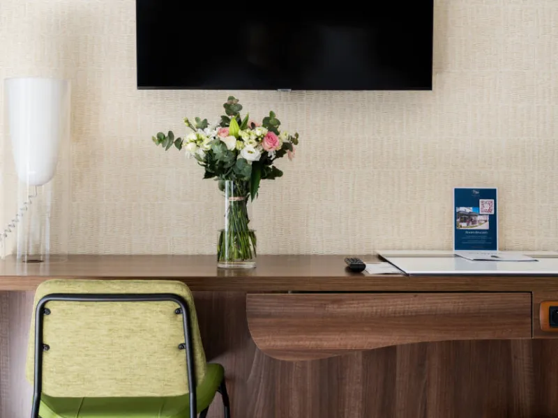 Outstanding bedrooms and suites: sophisticated decoration, quality furniture, modern fittings. A fitness and well-being area (an interior swimming pool, Turkish bath, jacuzzi), a bar and a restaurant. You will enjoy the absolute calm in the 2.5 hectares of greenery, the town centre and the magical heritage.Localisation