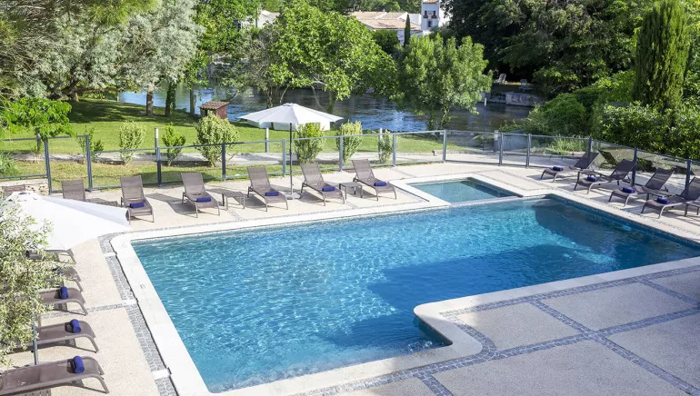 Niché dans un écrin de verdure de 1 000 m², sur les rives paisibles de la Sorgue, le Domaine de la Petite Isle vous invite à une escapade ressourçante et élégante. Profitez d’un cadre idyllique avec deux piscines et notre restauration, pour un séjour sans contrainte placé sous le signe du bien-être et de la gourmandise.