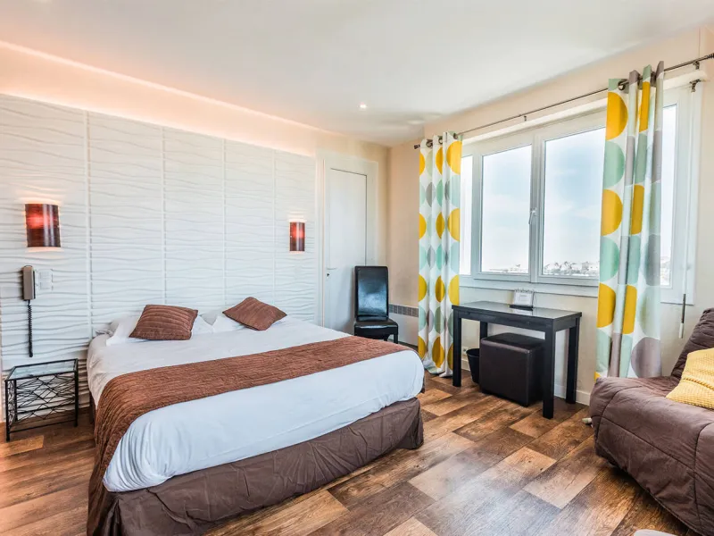 Les 18 chambres, claires et spacieuses, situées dans le bâtiment principal, disposent d'un décor chaleureux. Les 4 studios entièrement équipés se trouvent dans une maisonnette indépendante attenante à l’hôtel. Un appartement en centre-ville de Royan, adapté aux séjours en famille, complète l’offre.L’établissement dispose également d’un parking privé payant, sous réserve de disponibilité, pour faciliter les séjours au cœur de Royan.