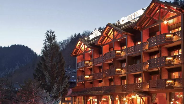 At the heart of La Clusaz ski resort in the Alps, the hotel Carlina is a small boutique hotel in the upper part of the village. It offers magnificent panoramic views of the mountains and a charming and cosy atmosphere of its 39 rooms featuring wood paneling, warm colors, antique furniture and large balconies overlooking the mountains.