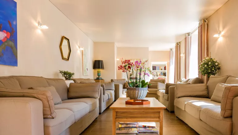 Le bâtiment typique de l’architecture thermale de la fin XIXème dispose d’un emplacement privilégié à la fois proche des Thermes et du parc thermal.