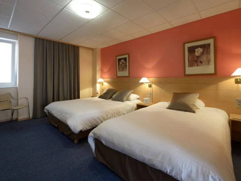 The 3-star Kyriad Montbéliard Sochaux is ideally located to the west of Montbéliard, close to the PSA factory and the Bonal stadium, and 15 minutes from the Belfort-Montbéliard TGV station. Accessible via the A36 motorway and with free parking, it is ideal for both business trips and family getaways.The hotel, currently undergoing renovation work, remains open and welcomes you in a modern and functional setting. The 66 spacious rooms combine comfort and relaxation, with en suite facilities, TV, free WiFi and air conditioning. Pets are welcome and reception is open 24 hours a day. The hotel also has facilities for disabled guests and charging points for electric vehicles.