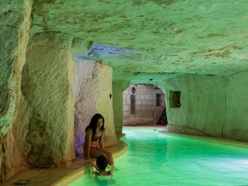 Start your day with a delicious breakfast made with local produce, before exploring a swimming pool dug into the rock and heated to 28°c.