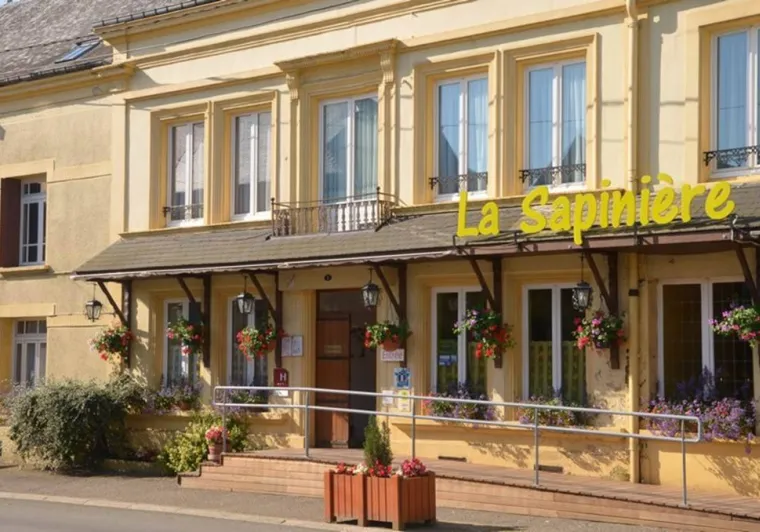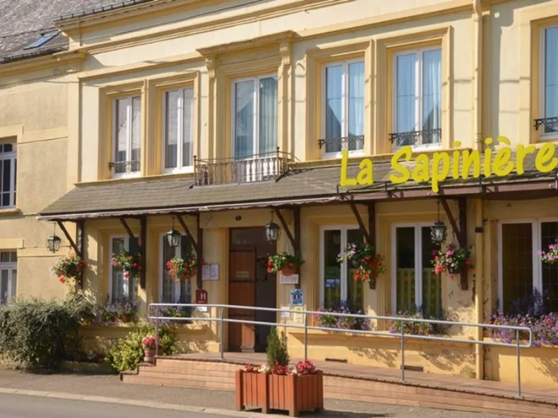 The hotel restaurant La Sapinière, Logis 3 Cheminées et 3 Cocottes, invites you to take a journey through the French Ardennes. Whether you're looking for a gourmet journey, a relaxing stay or a voyage of discovery, our large family home, once a stagecoach stop, welcomes you to a pretty Ardennes village near the banks of the Meuse, just 6 km from Sedan, a Town of Art and History. Maryse and Jacques will make you enjoy the beautiful Ardennes seasons, with their smiles and gourmet delights! At your disposal: reading room, flower-filled terrace, bar, seminar and banquet rooms (20 to 160 people), private parking and free garages for motorcyclists.Localisation