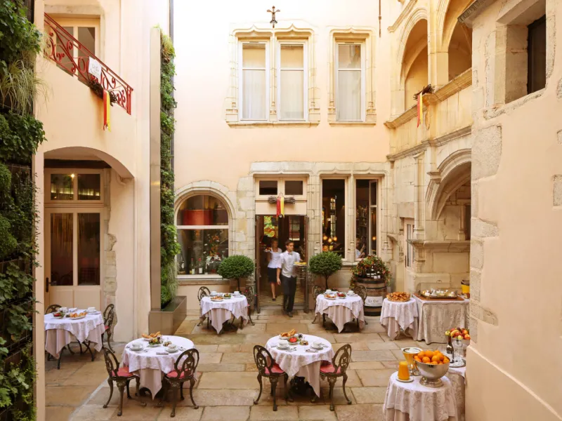 A member of the Small Luxury Hotels of the World, Hôtel Le Cep is ideally located in the heart of the historic town of Beaune, a stone's throw from Notre-Dame Basilica and the Hôtel-Dieu.Hôtel Le Cep is the harmonious fusion of several private mansions, to create a charming ensemble comprising 70 air-conditioned rooms, including 38 suites and 6 studios, comfortable lounges with fireplaces or pianos, a cellar where breakfast is served, two listed 16th-century courtyards, a French garden, a panoramic tower, 4 meeting rooms, a private tasting cellar, enclosed garages with valet parking and an Ayurvedic vegetarian restaurant: LunchBox.