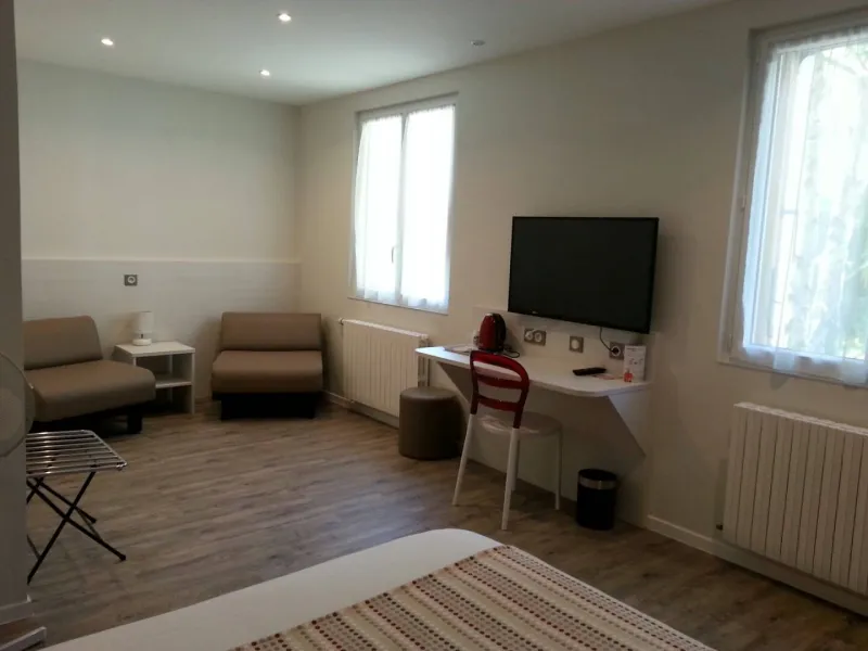 The single, double, twin and family rooms all have en suite bathrooms or showers with wc, televisions with canal+ and bein 1.2.3 and free wifi 6.