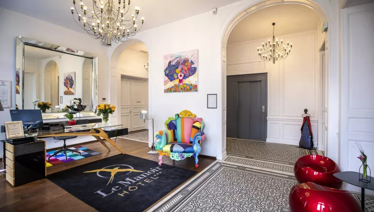 Le Manoir hotel, housed in a XIXth century building, renovated in 2011, will charm you with its singularity and its modern and contemporary style. Air conditionning in every bedroom ? lift ? You will enjoy its family atmosphere with 17 bedrooms equipped with palatial beds, TV with LEDS and free internet and wifi access. Quiet district, free parking area, 7mn walk from the old port, the city centre, close to the parks.