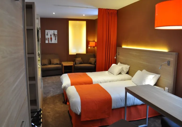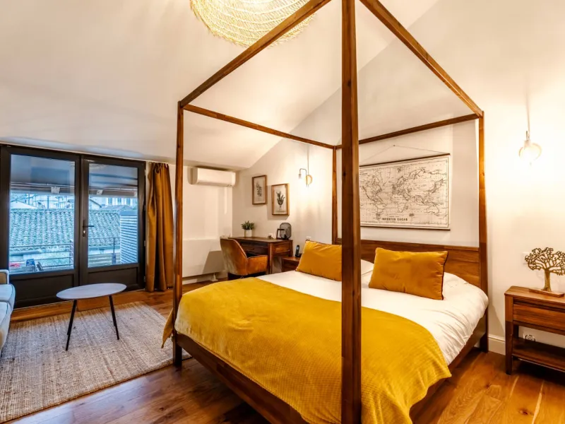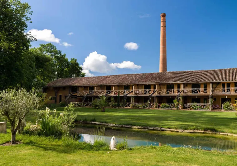 On the edge of the Charente in a century-old park, the Quai des Pontis hotel keeps a trace of its industrial past, in particular through the presence of its imposing chimney. Preserved by the current owners, it symbolizes the atypical nature of the hotel. A few steps away from the François 1er castle, the great cognac houses, the theater and the city center, the hotel offers rooms, lodges and suites (from 1 to 5 people), they are equipped with a private terrace with view on the garden or the Charente. The rooms have air-conditionning, a free wi-fi access, a small refregirator, a coffee machine. The hotel also has a closed parking with electric charging points, a bar, a lounge with a piano at your disposal, a summer swimming pool, children games, electric car rental… !Localisation