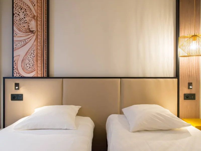 Our hotel offers 43 comfortable rooms, fully equipped to make your stay enjoyable. Free Wi-Fi is available throughout the hotel and free parking is also available (4 electric vehicle recharging points).