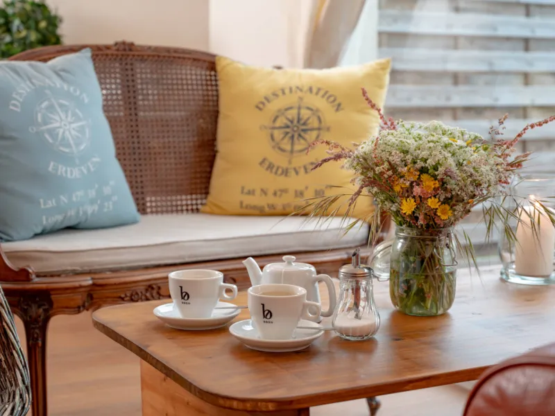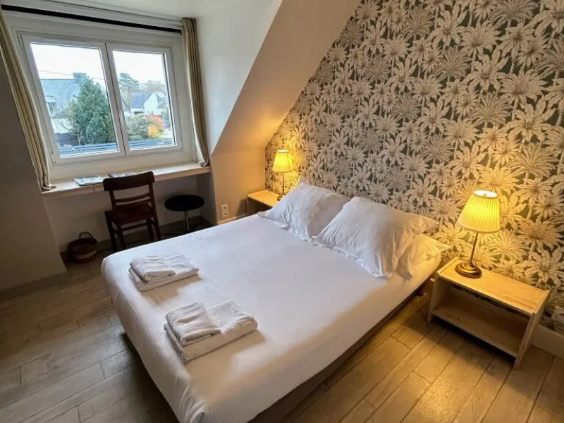 La Voile Bleue is a small hotel, more like a big guest house. We are ideally located on the road to the beach, 5 minutes drive from Kerhillio beach, near Carnac, Quiberon and Etel. We will do everything for you to have a pleasant stay with us. We offer comfortable rooms with free Wi-Fi and a restaurant. After a busy day, guests can relax in the bar or lounge of the hotel. At the restaurant you can enjoy traditional cuisine and delicious seafood in a casual atmosphere. Simplicity and conviviality are the hallmarks of the establishment. Private parking is available at the Hotel.Localisation