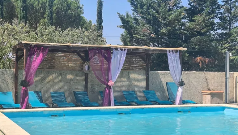 En été, les terrasses extérieures vous accueillent dans un écrin de verdure pour vos petits déjeuner et dîners dans une ambiance conviviale. Retrouvez-vous autour de la grande piscine pour un moment de détente autour d’un rafraîchissement, très apprécié des retours de randonnées. Soirées musicales improvisées en fonction des envies des convives du soir.
