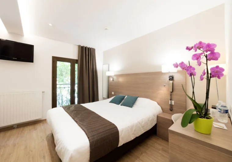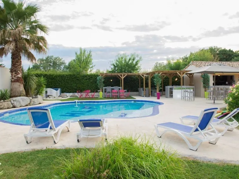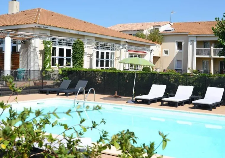 28 chambres design et entièrement rénovées dorment de plein pied dans un parc avec une très grande piscine extérieure et une jolie terrasse.