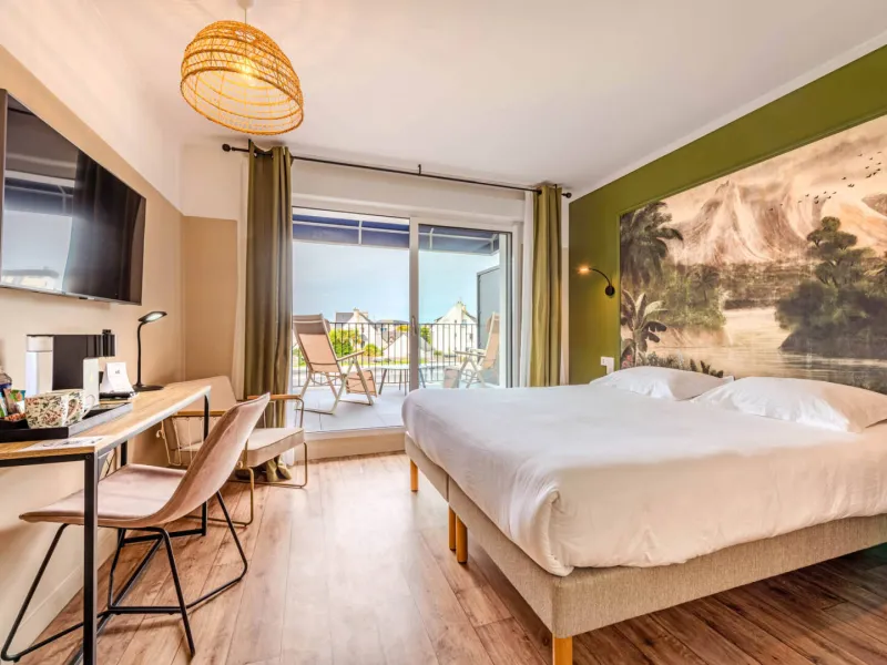 Ideally nestled in a green setting 300 m away from the center of the town, 100 m away from the beach and the thalassotherapy centre. Free private car park. Half-board in partenership with a nearby restaurant. Buffet breakfast with local specialities. Perfect to unwind and go hiking along the numerous trails nearby.Localisation