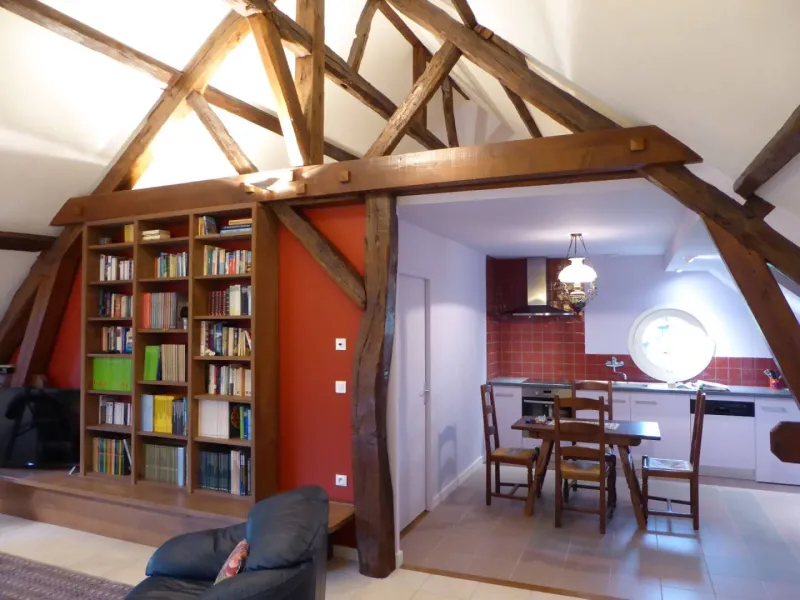 The Physalis apartment welcomes you on the banks of the Doubs in an old farmhouse that has been completely renovated. Ideal to enjoy a quiet and relaxing stay, with a view on a beautiful park and on a pond.Localisation