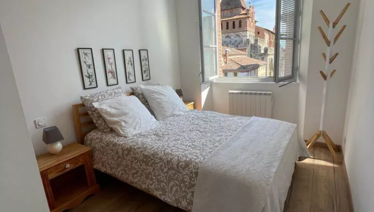The accommodation comprises a light-filled living room with kitchenette (microwave, oven, fridge, hob), dining area (table and chairs) and lounge with sofa bed for 2 people. 1 bedroom (1 double bed 140 x 200), 1 shower room (washing machine) and 1 separate toilet. Access to a reading room on the 1st floor. Wifi in the accommodation. Bed linen and towels provided and included in the price. Optional dryer available on site. Tourism and Handicap" approved accommodation.