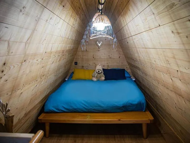 The Atypique chalet is a unique place for a memorable vacation getaway.With its atypical, A-shaped design, it offers an extraordinary holiday experience. The mezzanine bedroom, with its breathtaking view of the surrounding countryside, is a real highlight of this magical place. Inside, the Scandinavian ambience creates an atmosphere of comfort and relaxation. A fully equipped kitchen, air conditioning and Netflix are available to make your stay even more enjoyable. You can also enjoy the private covered terrace with Nordic bath to relax and admire the beauty of the surrounding nature.