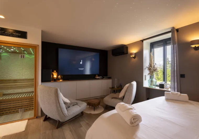 La Cabane Spa - A cocoon of well-being in the heart of natureLocated in the heart of the Domaine du Moulin, this top-of-the-range cabin is ideal for a relaxing getaway for two. Enjoy a private Nordic bath heated to between 35 and 40°C, set on an intimate covered terrace.
