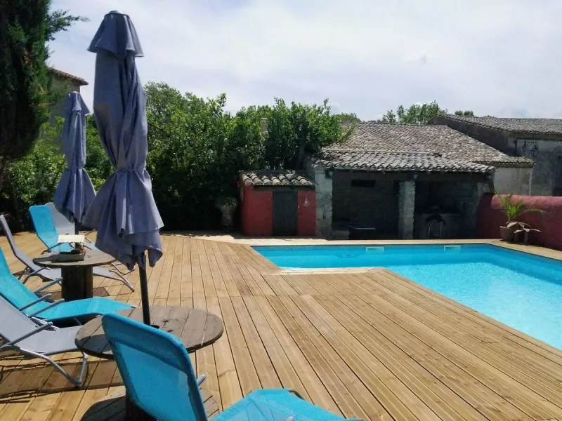 10 minutes drive from the Medieval town, a historic house with swimming pool and a garden.Localisation