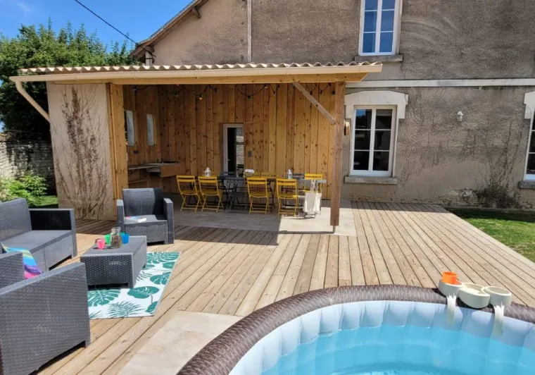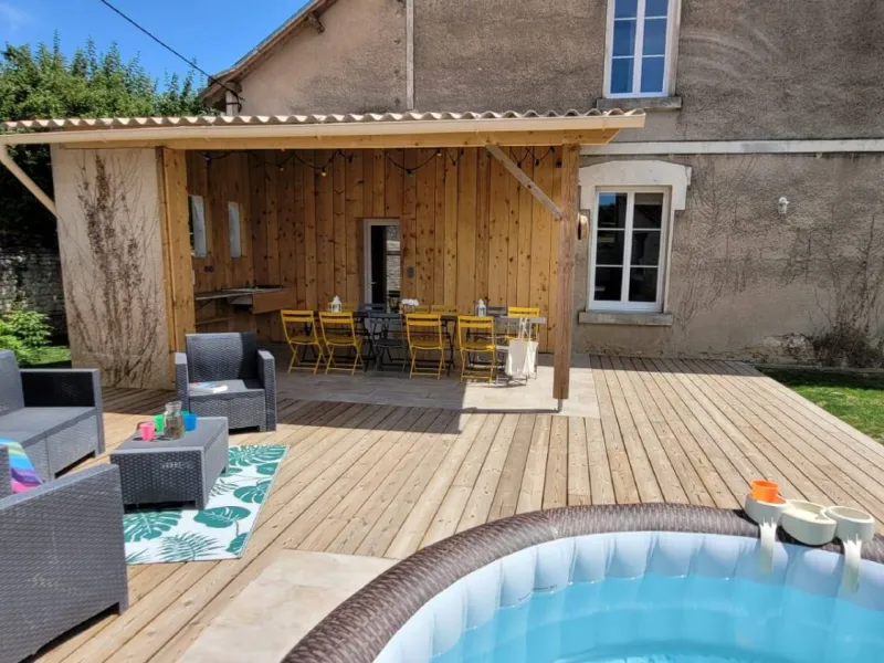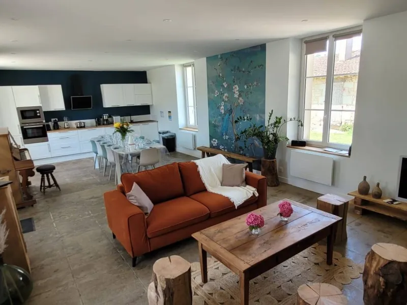 La Maison du Cocher is the very first restored gîte on the Domaine Les Chauveaux. This friendly, comfortable gîte sleeps 10/12.This self-contained gîte is perfect for vacations for two or three families or friends. You'll be able to enjoy convivial moments by the fire in our large living-dining room, or make the most of sunny days on our terrace with its summer kitchen and SPA.