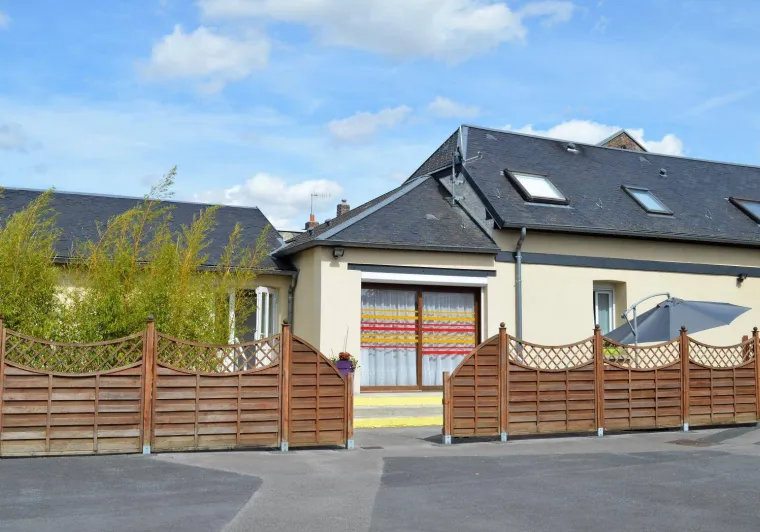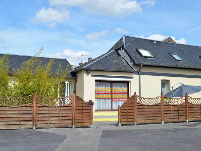 Free day of arrival. Spacious cottage located in the heart of the village, next to the media library and the museum "La Maison de Marie-Jeanne". Ideal for a small group, the gîte has a common courtyard, a private terrace and a parking lot. First floor: entrance hall, laundry room with washing machine and cleaning equipment. Independent toilet (adapted for people with reduced mobility). Fully equipped kitchen (3 ceramic hobs, oven, extractor hood, dishwasher, filter coffee maker, coffee pods, microwave oven, etc.). Living/dining room with flat screen TV 108cm. 1 bedroom for 2 persons (2 beds 90x190cm) with private adjoining shower room adapted for people with reduced mobility. Upstairs : landing with reading corner, 1 bedroom for 3 persons (3 beds 90x190cm), 1 bedroom for 2 persons (2 beds 90x190cm), shower room with shower 90x90cm, independent WC. Sheets provided, beds made on arrival. Electric heating, charges not included. Wifi (fiber speed). Bicycle receptionLocalisation