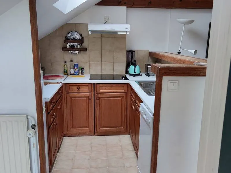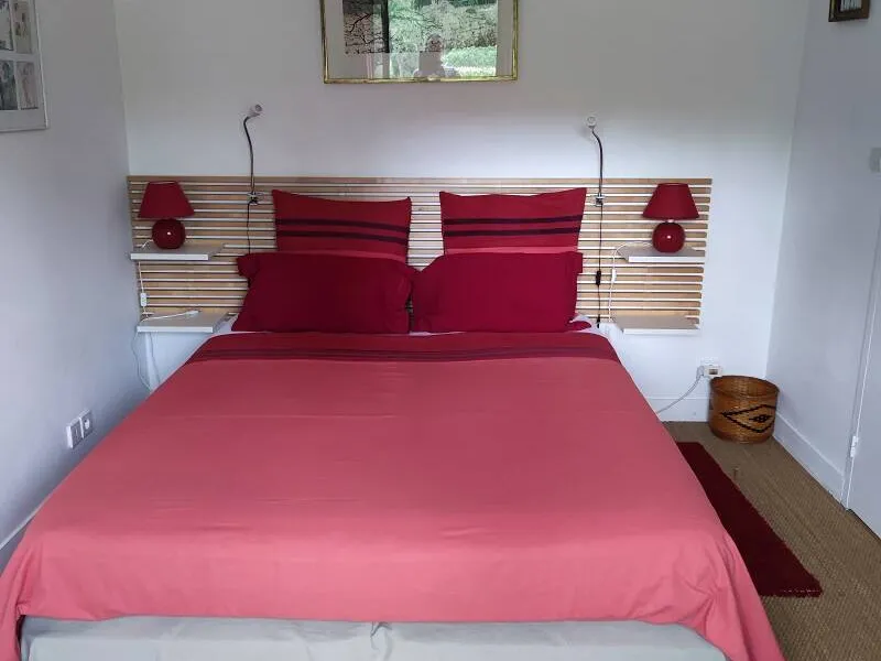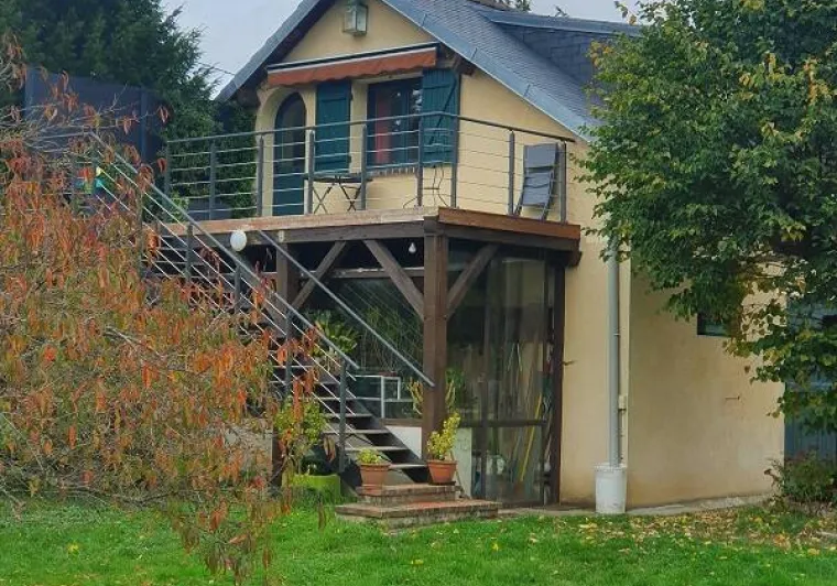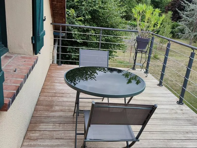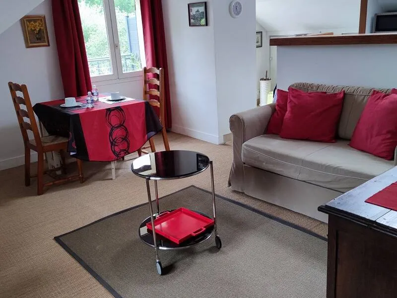 On the first floor of a building, close to the owner's living area (access by outdoor staircase, with easy steps), 38 m² studio including: fully fitted kitchen with microwave-oven, ceramic hotplates, dishwasher and fridge/freezer. Lounge/dining room area with flat-screen TV, DVD player and sofa. Bedroom area (separated by a partition) with 1 double bed. Shower room with washing-room/dryer. Wifi. Pretty terrace with garden furniture. Large garden next to a river (can go fishing) with barbecue. Beds made and towels provided.Localisation