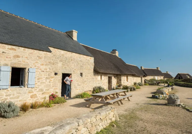 Nestling between the rocks of the Côte des Légendes, on an exceptional natural site, 100m from the GR®34 and the beaches, the Meneham site is an ancient village of thatched cottages restored with the respect and charm of yesteryear.Open all year round, you can rent a room, a flat, a gîte for 11 - 13 - 15 - 17 people or the whole gîte for 19 people. For a night or a longer stay, alone or with friends, come and discover this very friendly "à la carte" concept.