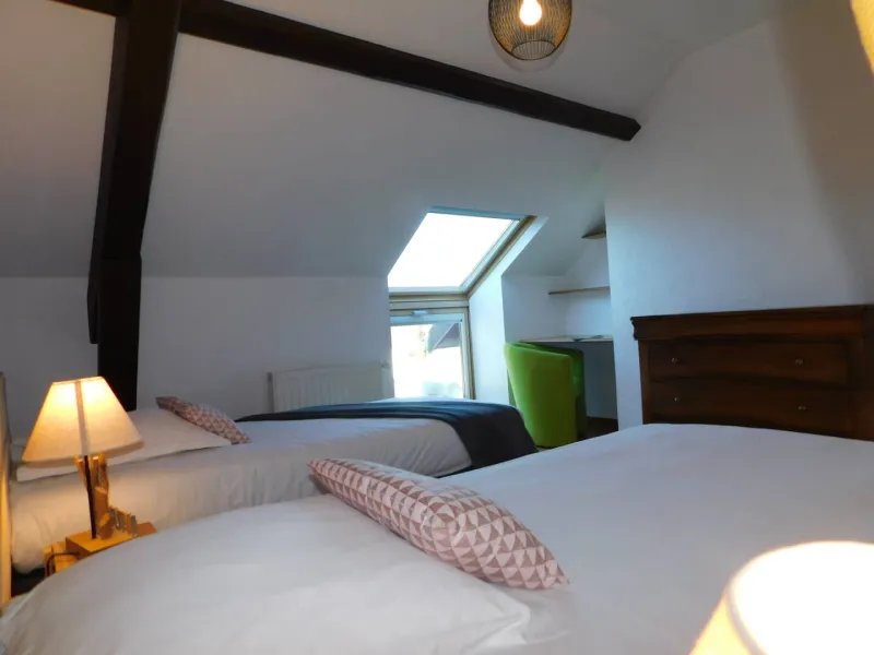 A l’étage côté nuit trois belles chambres dont une équipée d'un lit bébé ainsi qu’une grande salle d'eau avec WC indépendant.