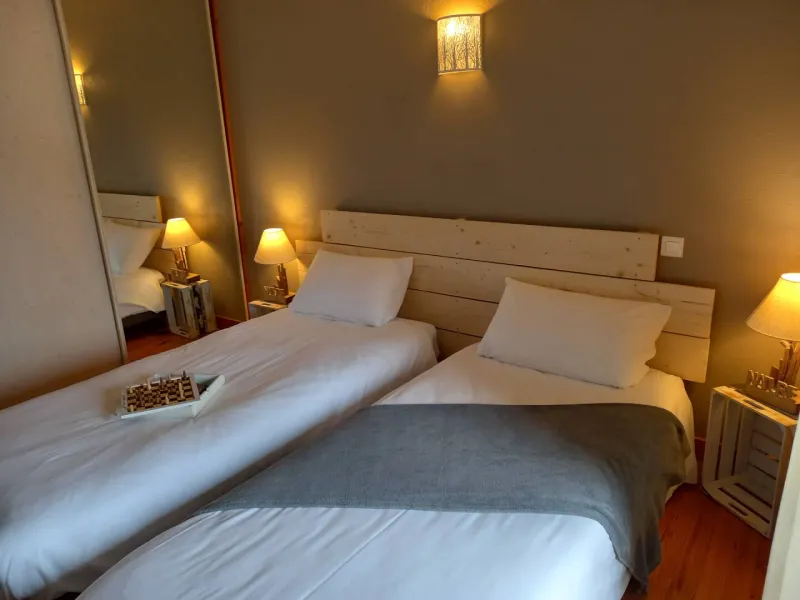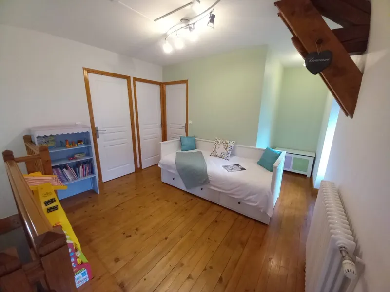 Au rez de chaussée terrain attenant clos devant la maison avec un salon de jardin privatif.Le gîte se compose d'un vaste espace de vie moderne et cosy : une cuisine toute équipée ouverte sur la salle à manger et le salon avec canapé convertible et détente près du poêle à bois. Vous bénéficierez également d'une buanderie avec lave linge et espace pour stocker velo, ski, casque à moto et d'un wc indépendant. A l’étage côté nuit vous trouverez une chambre avec un lit 160 équipée d'un lit bébé et trois chambres avec deux lits 90 ainsi que deux grandes salles d'eau avec chacune leur WC .