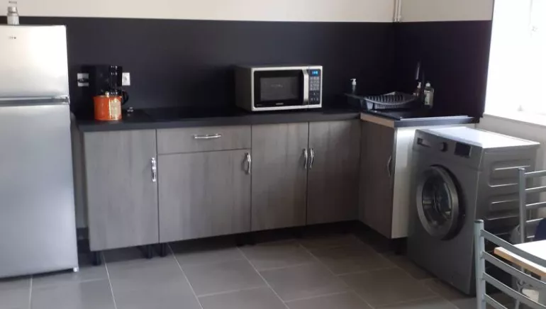 - pièce à vivre et cuisine toute équipée (frigidaire/congélateur, plaque de cuisson, micro-onde, cafetière, machine à laver, vaisselle ...)