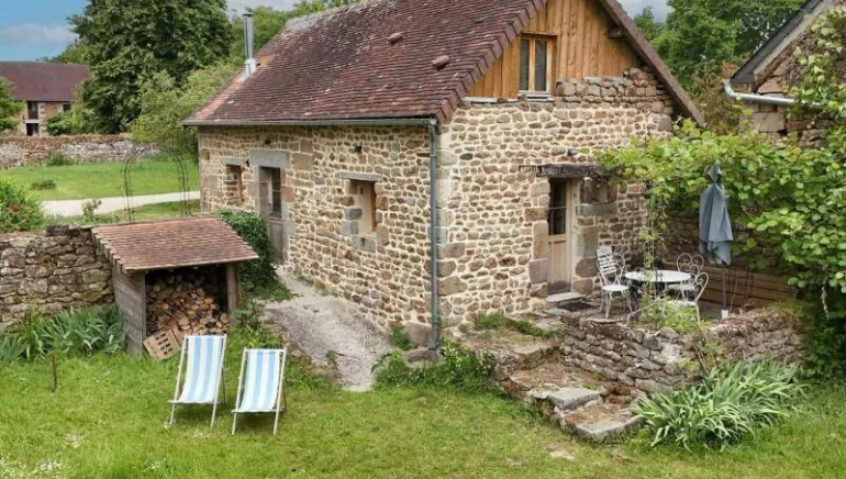 Old independent house. Ground floor: fitted kitchen, living room (wood stove, sofa bed for 2 people, TV). Upstairs: bedroom (double bed 160 cm), bathroom with wc. Wood heating included. Independent, unfenced garden with nearby lake. Rental of pack donkeys, mountain bikes and electric bikes on site.