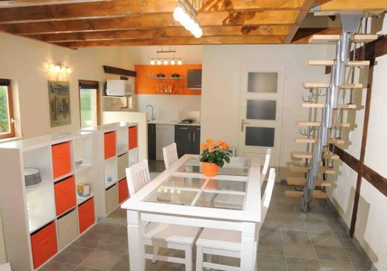 In the courtyard of the house, where you can park your vehicle, access to the gîte is via a private staircase.In the shared garage on the first floor, you can use the washing machine, iron and ironing board.