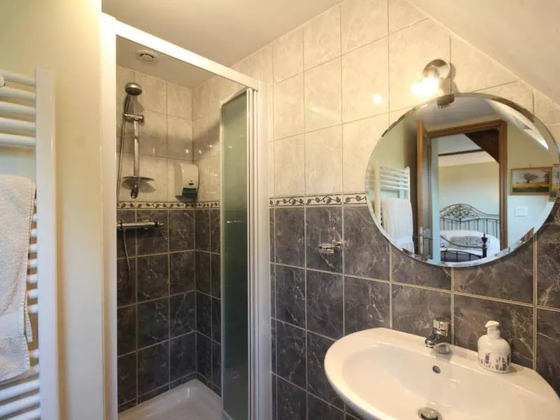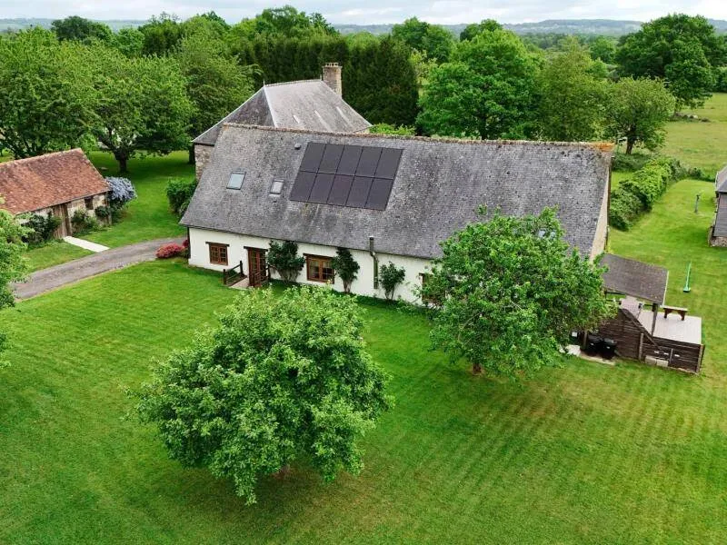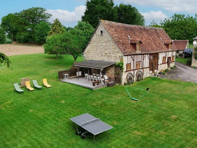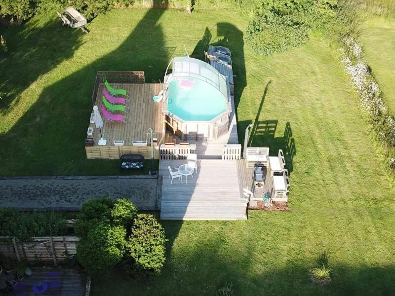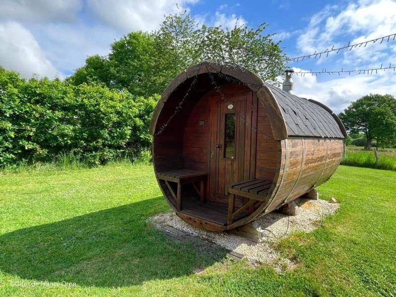 The impressive structure of this old press is beautifully highlighted. You will benefit from the comfort of this big cottage very close to the green way and the small city of character of Domfront.Old independent press near the owners. The swimming pool, jacuzzi, sauna and the garden are private for gests. Ground floor: living room (pellet insert, games console) with dining room, kitchen, bedroom (1 double bed) with private shower room / wc, bedroom (1 double bed 150 cm) with bathroom / Wc (bath and shower). Upstairs: bedroom (2 single beds) and bedroom (2 single beds) with shower room / wc. Floor by second staircase: landing with corner living room, room (1 double bed 150 cm) with room of water / toilet private. Central heating. Possibility dryer on request. Private terrace with gable without opposite. Access 2 hours included in the sauna in a barrel and in the outdoor Jacuzzi (supplement 30 € / 2 h beyond). Above ground pool heated from April to September, pétanque court, badminton, football and hockey.