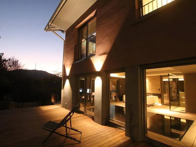 Contemporary house ***** for 6 adults and 4 children. Indoor pool at 31°, sauna, kids' floor, ski and bike room, 100 m from the lake, in a wooded setting. Private parking lot. Charging station. Geothermally heated and air-conditioned Egologe.Localisation