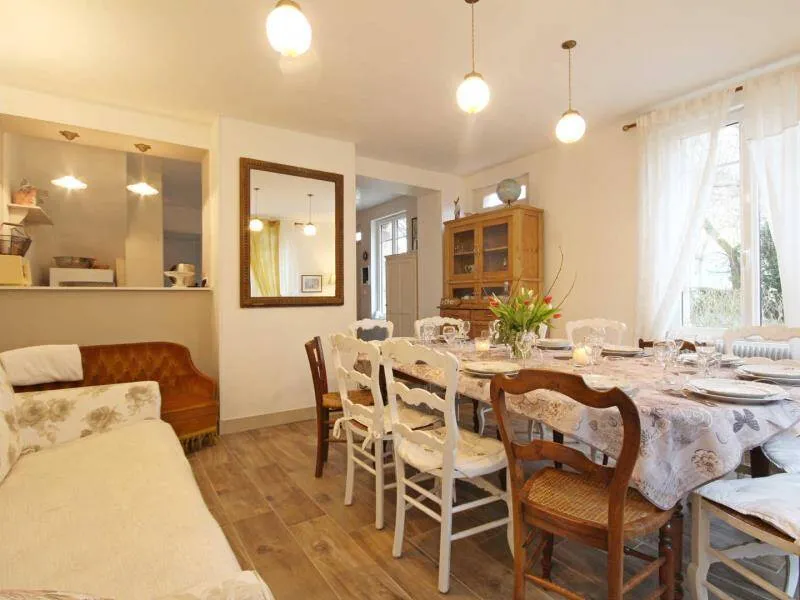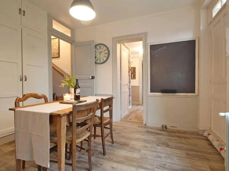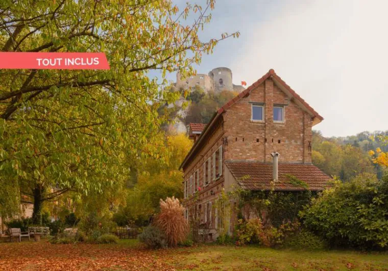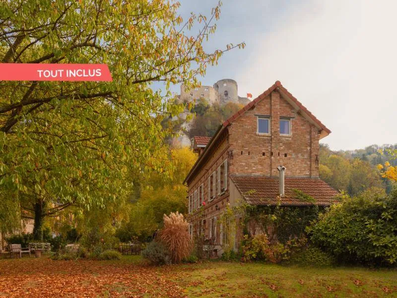 The Clos du Château offers an exceptional location in edge of the Seine, between the Château Gaillard and towpath. It takes you to Petit Andelys, charming with its houses of wood or stone, to its shops, restaurants, banks of the Seine (panoramas). This beautiful house welcomes you and offers you space and comfort for your appointments with family or friends. Ground floor : entrance hall on the kitchen opening onto the dining room, overlooking the Château Gaillard, sitting area (decorative fireplace), bedroom spirit campaign (1 double bed), shower room, toilet. 1st floor : bedroom romantic spirit (1 double bed) with views of Château Gaillard, lounge, TV, DVD player, bathroom in the room and separate toilet, 2nd bedroom (1 double bed) with sitting area, bathroom and closed toilet. 2nd floor : bedroom spirit dormitory (4 single beds) overlooking the castle, bedroom spirit flea market (1 double bed) overlooking stunning and remarkable view of the Seine, desk, bathroom, toilet. Catherine particularly cared decoration and will ensure that your stay is happening for the better with its small attentions. A 2000 m² enclosed nice garden with trees.Localisation