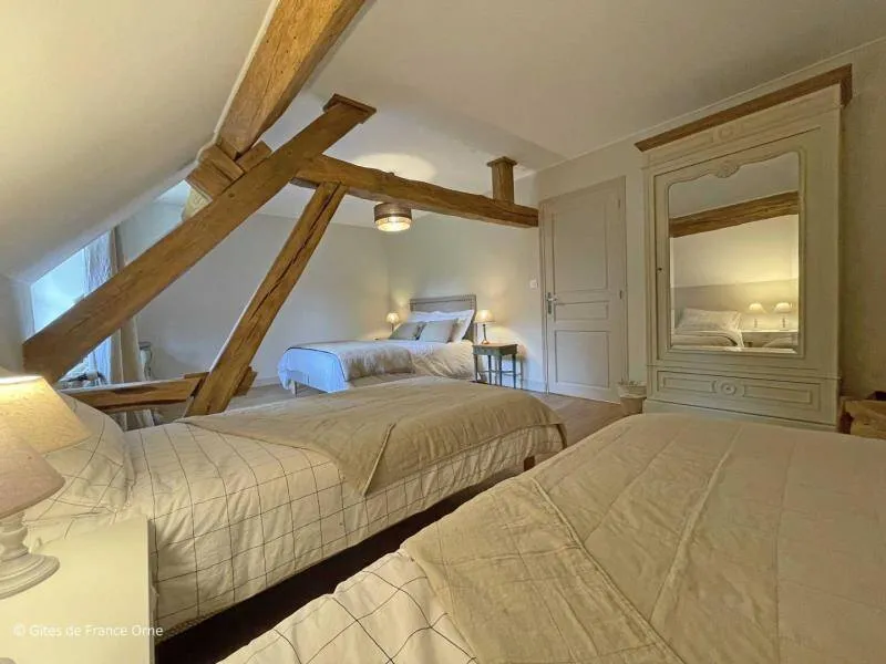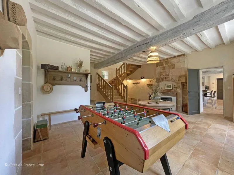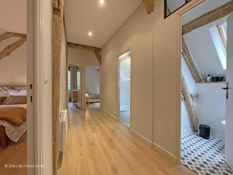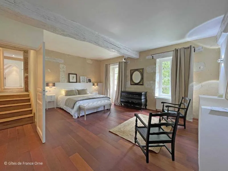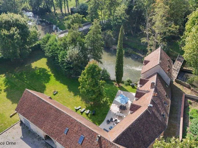 The Moulin de Dorceau is a remarkable aesthetic testimony to Perche. Recently restored, it offers you a stay with family or friends in an exceptional setting in the heart of Perche. Located in the middle of emblematic villages of Perche and on major routes, the spot is ideal for lovers of a wild and preserved environment.All-inclusive accommodation Ground floor : Large entrance with table football, Equipped kitchen with a fireplace for grilling, Living room with fireplace and dining room 1st floor : 1 bedroom with 2 sleeping areas separated by a curtain and each with 1 single bed 90x190 cm and separated by a curtain 1 bedroom for 2 people with a double bed 140x190 cm 1 bedroom for 4 people with a double bed 140x190 cm and 2 single beds 90x190 cm 1 bedroom for 2 people with a double bed 160x200 cm, private shower room and private toilet 1 bathroom with toilet and 1 shower room with toilet 2nd Floor : 1 bedroom for 2 people with a double bed 140x190 cm 1 bedroom for 2 people with 2 single beds 90x190 cm 1 bedroom with 1 single bed 90x190 cm 1 bathroom and a separate toilet Terrace of 140 m2 on land of 8000m2 with an island.