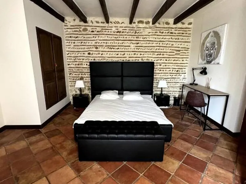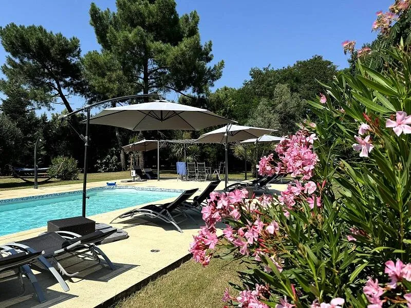In the heart of the South-West, between Bordeaux and Toulouse, and at the gateway to the Landes, come and recharge your batteries in this old farmhouse that has been completely restored. The Terrasses des Mimosas stretch out in a landscape of crops, on the first south terrace of the Garonne. Very close to the Voie Verte of the Garonne canal and Marmande.The gîte Les Dahlias is ideal for large families: ground floor : fully equipped independent kitchen, large living room, dining room, bedroom 1 (1x160) with private shower room/wc, bedroom 2 (1x90 + heated convertible 1 place) with private shower room/wc, laundry room, wc. Upstairs, bedroom 3 (1x140 and 1x100) with private shower room/wc, and bedroom 4 (2x80 or 1x160 + 1x80 or 2x160) with private shower room/wc and a mezzanine on the living room (1x140), TV lounge area. Two covered terraces with garden furniture. Garden with heated swimm
