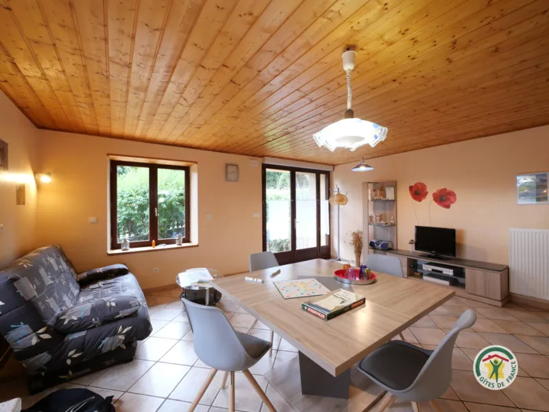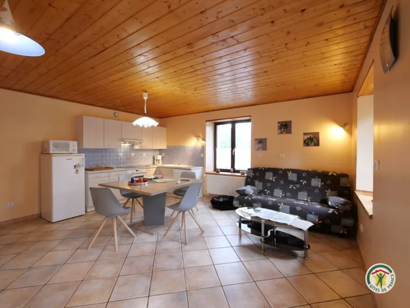 In village close to the Laye family resort, gîte on ground floor of the owner's house on cattle farm. Private entrance via terrace. Living-room, sitting area, TV, VCR, CD player. Equipped kitchen (dishwasher, microwave). 2 bedrooms (3 single beds, one a hideaway, 1 double bed). Shower, toilet, washing machine, dryer. Central heating. Enclosed garden. Garden furniture, barbecue. Closed garage. Golf course 2 kms away. Ping pong table. 2 rental toboggans available. Optional sheet rental and cleaning service at the end of stay. Baby equipment available: cot, baby chair Garden furniture, barbecue. Closed garage. Golf course 2 kms away. Ping pong table. 2 rental toboggans available. Optional sheet rental and cleaning service at the end of stay. Baby equipment available: cot, baby chair.Localisation
